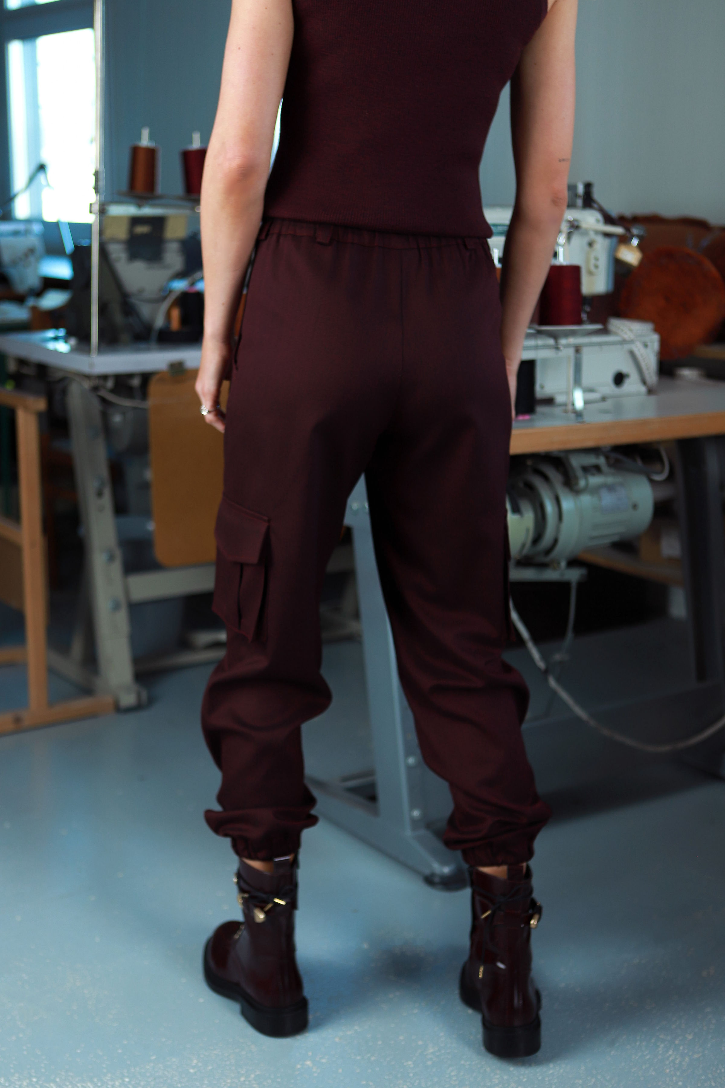 „Cargo“ tipo siluetas čia atsiskleidžia itin moteriškai - šoninės kišenės harmoningai dera su švariu kirpimu, todėl kelnes lengva derinti tiek su to paties kostiumo marškinių tipo švarku, tiek su kitais kolekcijos drabužiais, išlaikant šiuolaikišką, šiek tiek laisvą, bet labai rafinuotai prabangų įvaizdį.