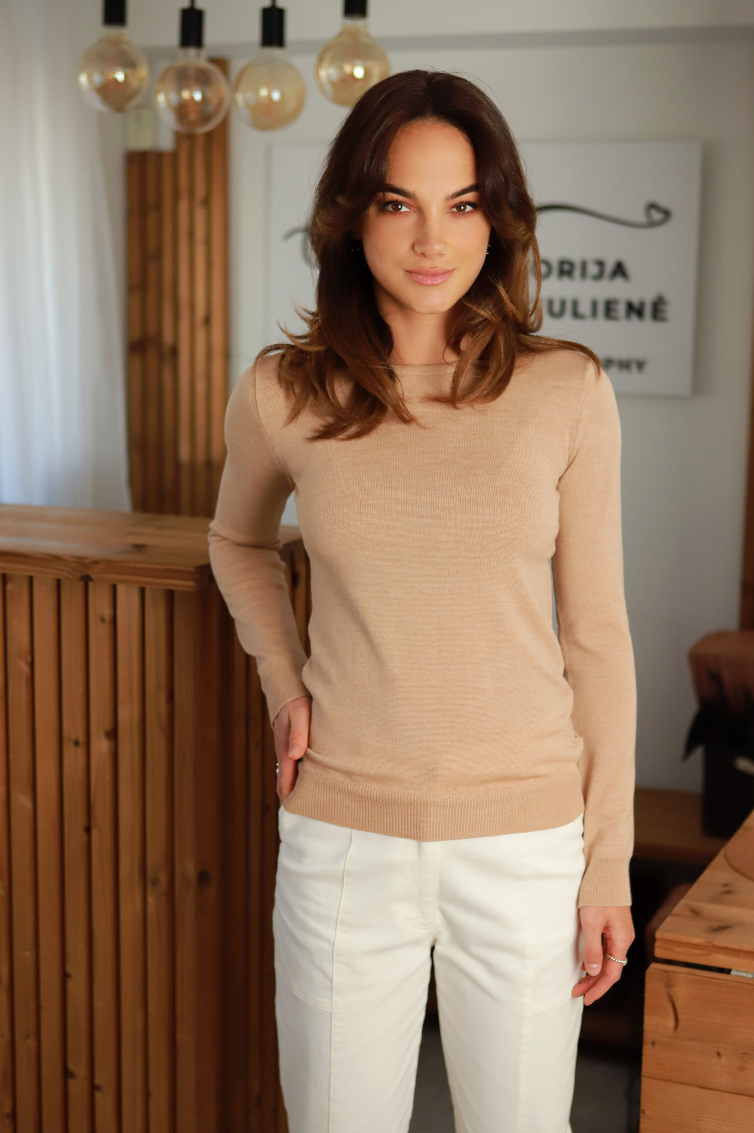 - Mūsų kūryboje itin mėgstamo - „latte“ atspalvio, tad apgyvendinus spintoje- tikrai tiks jungtis ir į kitus derinius.