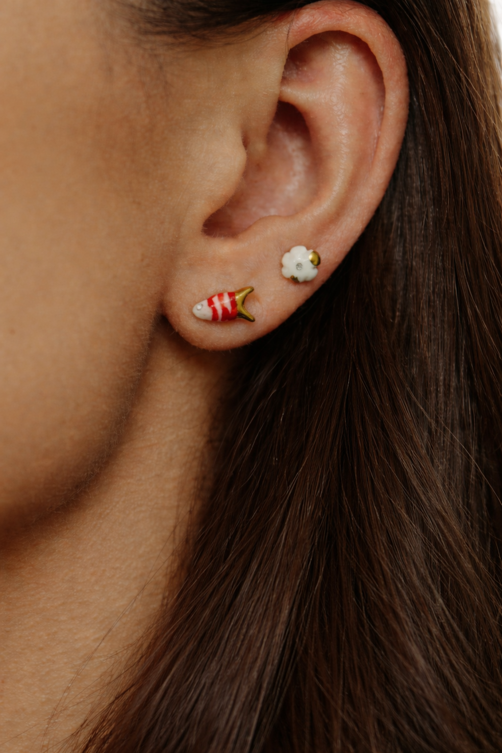 Maži dalykai. Balto porceliano mini auskarai