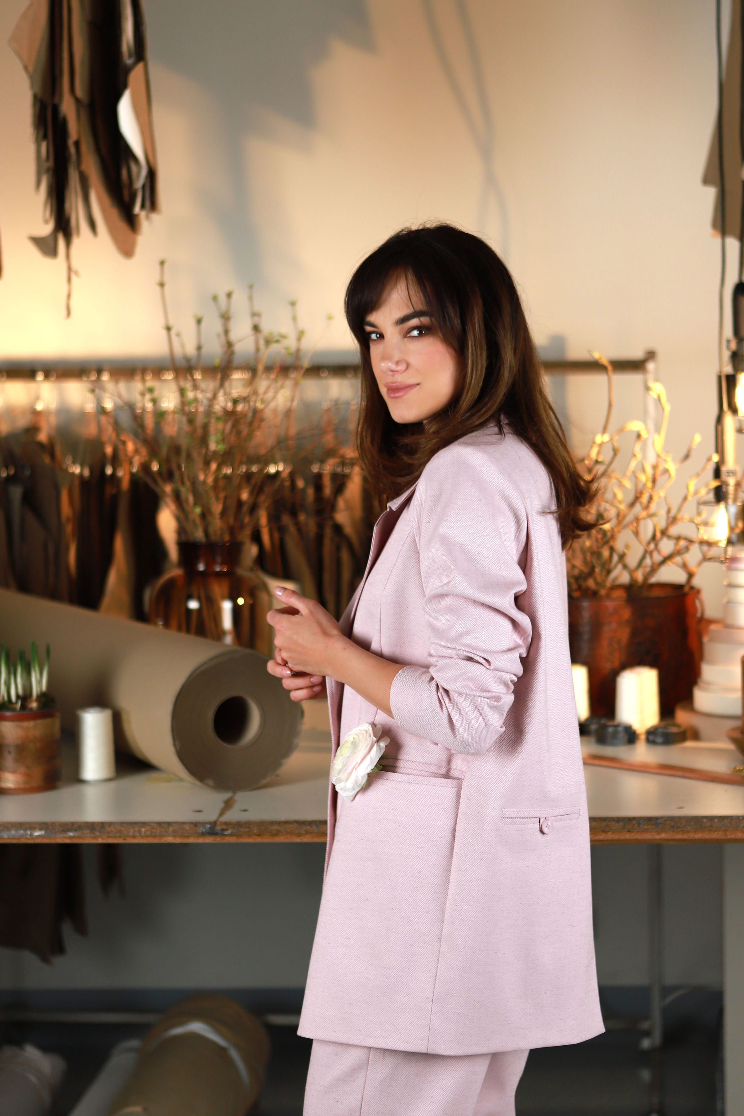 Labai norėjau sumakaluot kokteilį iš „gardžios ir skanios“ spalvos ir klasikinio, šiek tiek „oversize“ silueto, kurį „pagriežtinom“ petukų konstrukcija. Pastarieji suteikia siluetui tvirtumo, o tuo pačiu leidžia išlikti moteriškai ir lengvai drąsiai. Išskirtinė, stilinga audinio tekstūra pabrėžia švarko charakterį – modernų, bet neperkrautą.