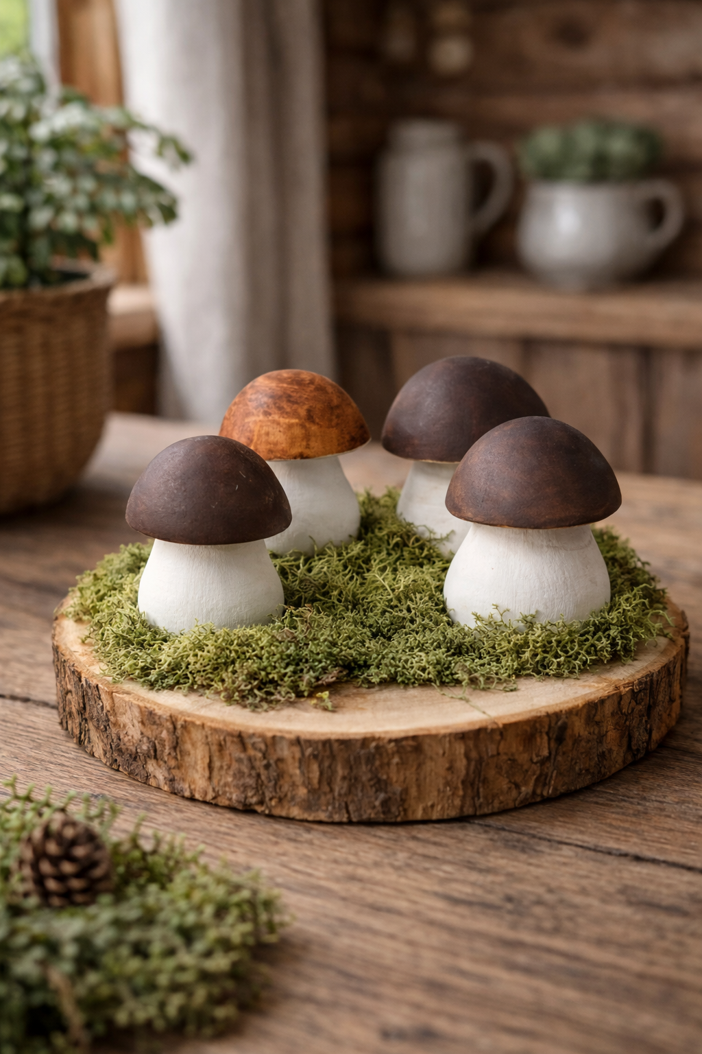 Pridėkite žaismingumo ir natūralaus grožio savo šventiniam stalui. Pagamintos iš aukštos kokybės, ekologiško medžio, Puikiai tinka kaip stalo centras, židinio dekoracija ar nuostabus papildymas bet kokiam miško tematikos šventiniam dekorui. Šis unikalus akcentas suteikia jaukumo ir kaimiško žavesio bet kuriam kambariui.